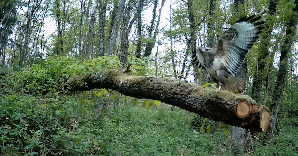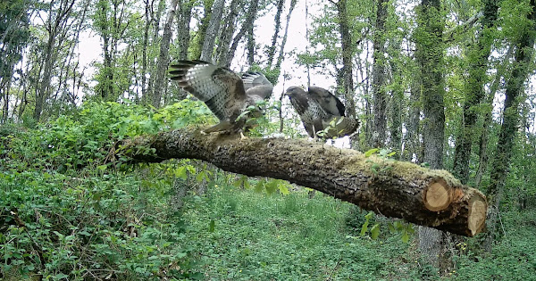 The other footage is of a pair of buzzards, what appears to be a male bringing food to woo his actual or future mate.